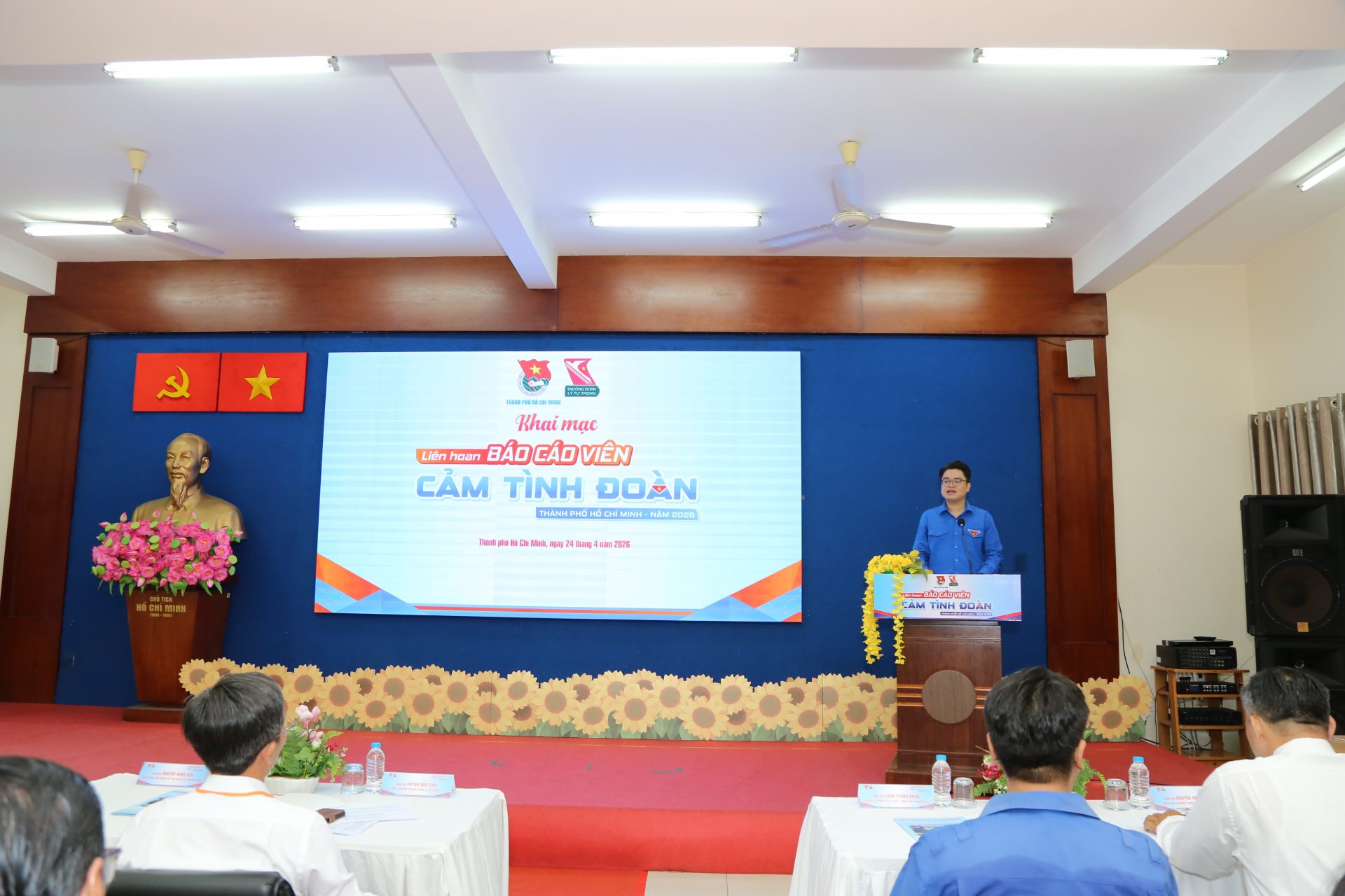Sáng ngày 24/4/2026, trong không khí thi đua sôi nổi của tuổi trẻ Thành phố, tại Trường Đoàn Lý Tự Trọng, Trường Đoàn Lý Tự Trọng phối hợp cùng Thành Đoàn TP. Hồ Chí Minh tổ chức khai mạc Liên hoan Báo cáo viên cảm tình Đoàn toàn thành và Chương trình tập huấn nâng cao công tác Báo cáo viên năm 2026. Sự kiện thu hút sự tham gia của Thường trực Thành Đoàn cùng hơn 70 đại biểu là những cán bộ Đoàn tâm huyết, những “người truyền lửa” tại các cơ sở Đoàn trực thuộc.